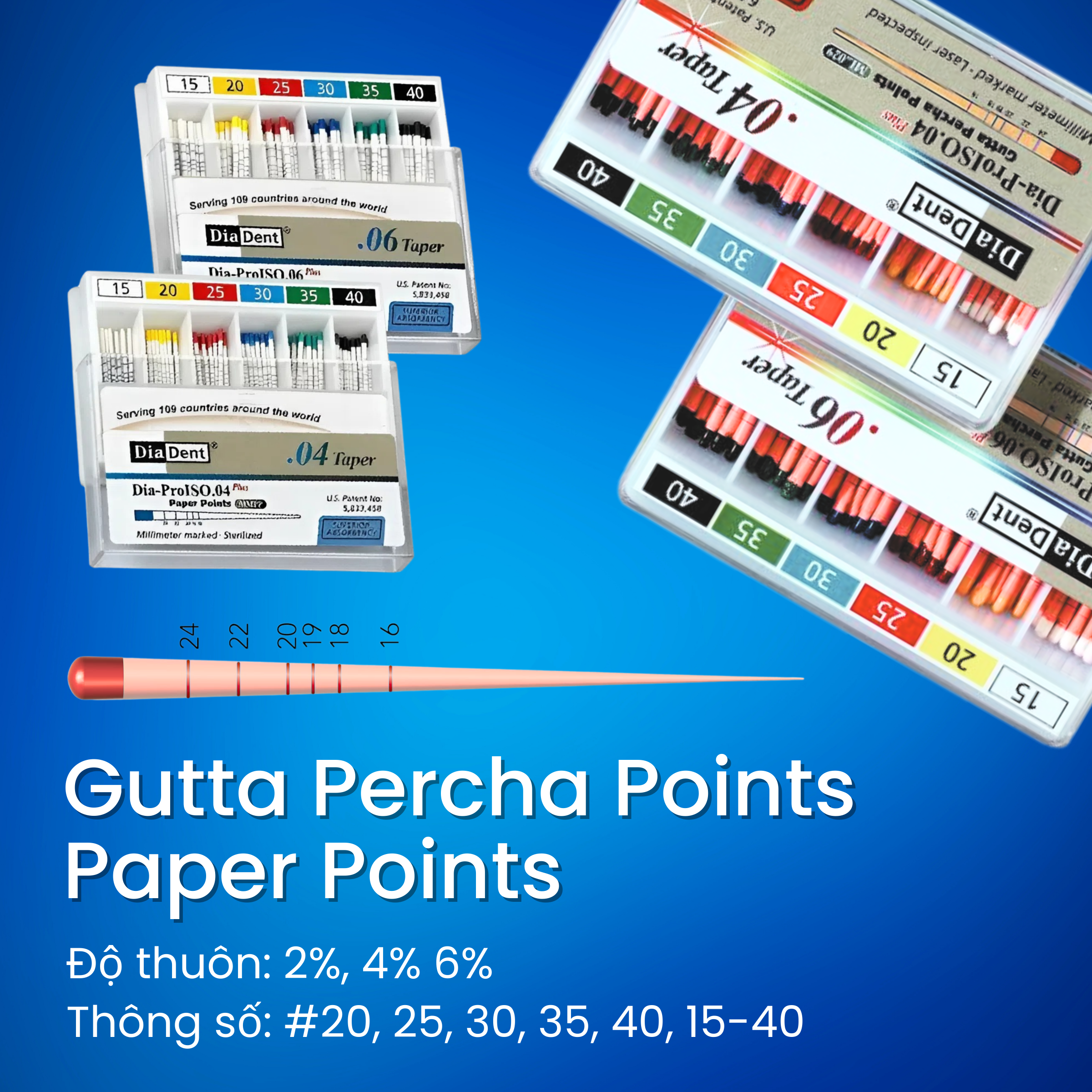 • Độ thuôn 4% & 6%: #20, 25, 30, 35, 40, 15–40 → Hộp 100 cây